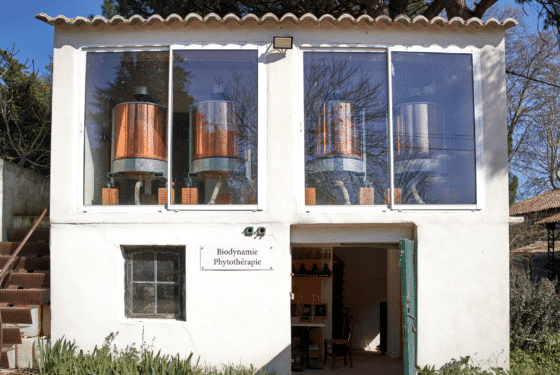Dans la propriété viticole, où 600 moutons piétinent les parcelles et fournissent un fumier naturel, il a planté avec son épouse Marie une quinzaine de variétés de plantes aromatiques. À quelques pas des pieds de vignes sortent de terre les lavandes, immortelles, sauges, et autres romarins. Une fois récoltées et après avoir séché sur des sortes de hamacs en toiles épaisses, elles sont transformées en infusions, décoctions ou huiles essentielles grâce à un alambic, et seront ensuite déposées sur les vignes. « Mon objectif, c’est d’être totalement autonome en intrants, explique Tanguy Castillon. Ne plus utiliser de produits chimiques de synthèse, ne plus acheter de bidons non plus… Avec toutes les aromatiques, chaque huile essentielle intervient sur un aspect spécifique du végétal. »