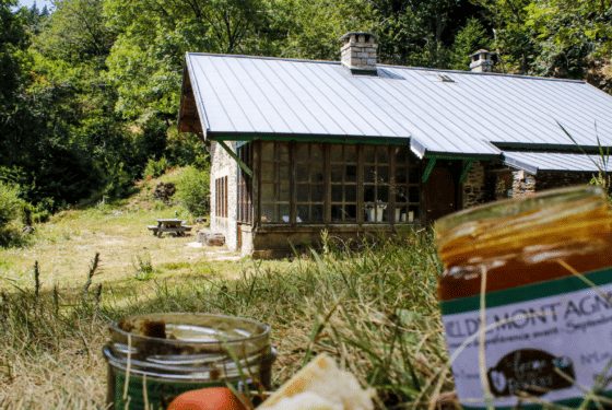 Pour commencer, vous prendrez bien une baguette ou du pain complet bio à la boutique paysanne de Ganges « Au gré des saisons », c’est dans l’Hérault… mais bon ! Une trentaine de producteurs y sont réunis. Outre le pain, ils proposent des allers-retours de saucisse sèche et des terrines maison, ou encore des fruits et légumes à la croque de saison pour les appétits non carnivores. Plus loin, longeant la vallée de l’Hérault tout en lacets à partir de Pont d’Hérault (dans le Gard !) vous trouverez des confits d’oignons doux, des jus de pommes reinettes, des cerises ou des fraises de printemps au magasin de la « coopérative Origine Cévennes » de Saint-André-de-Majencoules, celle qui exporte dans toute la France les fameux bulbes AOP inscrits au patrimoine de la grande cuisine. Alors que vous reprendrez le convoi, le bord de route vous fera parfois de nouveaux appels de roue avec ses producteurs amateurs ou professionnels qui attendent le chaland pour faire commerce de leurs miels, pommes et autres confitures de châtaignes. Puis, à partir de Valleraugue (on dit de nos jours Val d’Aigoual), plus rien sinon… la grimpette et la contemplation d’un paysage cévenol intemporel et son roulis automobile à faire tourner la tête des enfants, jusqu’au village de l’Espérou. Direction ensuite le col de la Serreyrède et sa ligne de partage des eaux, ce qui signifie, si on y pense et bien qu’on n’y pense jamais, que la prochaine pause pipi aura des conséquences… jusqu’à l’estuaire de la Gironde !