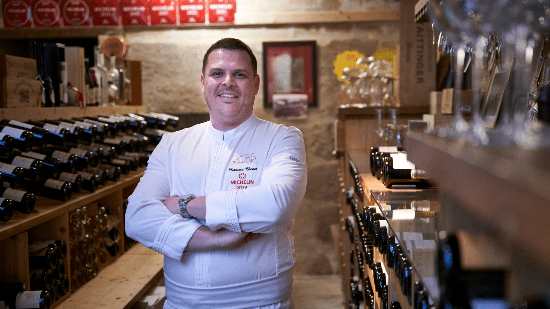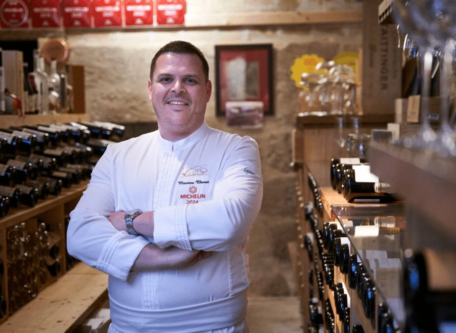 La cave compte « entre 450 et 500 références, plus de 6 000 bouteilles venant de toute la France, même si la majeure partie demeurent des étiquettes gardoises et provençales », présente Maxime Chenet. Le chef confie la responsabilité de cette pièce à son maître d’hôtel Laurent Sturny et à son sommelier Gaël Laverne, avec qui « c’est un régal de s’amuser pour trouver, le vin qui ira le mieux avec chaque plat, selon le goût du client. »