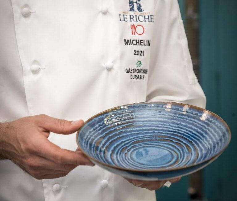 Appelés à la créativité, les chefs jouent désormais sur les matières et les motifs pour personnaliser leur table et refléter leur personnalité. Sébastien Rath, le chef alésien qui vient de décrocher sa première étoile verte au guide Michelin*, le défend : « La particularité du Restaurant Le Riche réside dans le subtil mélange entre l’esprit baroque de la bâtisse et notre décoration ultramoderne. Nous jouons notamment sur les couleurs, les textures, et les matières présentes sur la table afin de créer cet effet « waouh » qui doit se confirmer lors de la dégustation. »