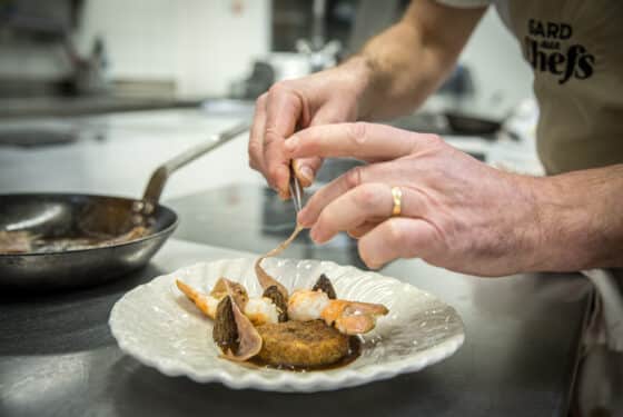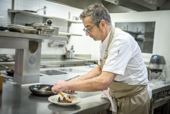 « Notre choix, avec mon épouse Sandrine, est un peu différent », témoigne pour sa part Jean-Paul Lecroq. « Nous ne travaillons qu’à deux, que ce soit en cuisine, en salle, et à l’accueil. Nous nous devons d’être très complémentaires. Il nous faut de la réactivité, de la constance et de la complicité. En répétant le geste, nous n’en sommes que plus précis. Le fait de recevoir les clients au sein de notre maison (ousta, en occitan, ndlr), où la cuisine est ouverte sur la salle, leur fait également accepter le concept », détaille-t-il.