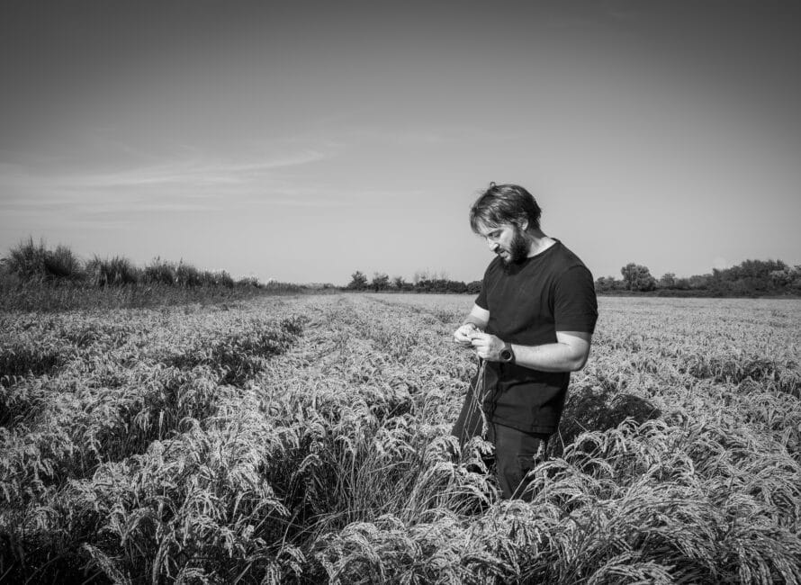 « La rizière est à présent à sec. D’ici une quinzaine de jours les épis seront mûrs. Il sera temps de moissonner. » Debout devant l’un de ses champs, Sébastien Roussel, riziculteur installé à Saint-Gilles, détaille le cycle du riz, une céréale récoltée à la miseptembre et dont la Camargue produit quelque 80 000 tonnes chaque année sur une surface de 13 000 hectares. Riz long, mi-long ou riz rond, ce Camarguais âgé de 39 ans livre sa production au silo d’un acheteur en gros qui va ensuite commercialiser ce riz à sa marque ou bien à un transformateur.