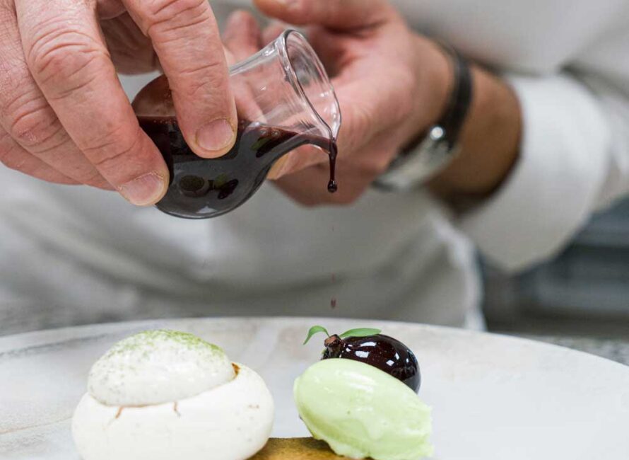 Les codes de la haute gastronomie connaissent des mutations et s’adaptent à leur temps. Michel Kayser**, Chef propriétaire du restaurant doublement étoilé Michelin Alexandre à Garons, le reconnaît : « Avant, le cuisinier avait sa place en cuisine et c’était au directeur de salle ou d’établissement de rester en salle. » Désormais, il est courant de voir le chef naviguer lui-même entre ces deux univers. L’une des conséquences de cette évolution, est le bouleversement des codes des arts de la table. Il y a vingt ans, les convives étaient accueillis à leur table par une vaisselle de présentation raffinée, complexe et très chargée. « Elle était, disons-le, un peu envahissante voire intimidante », ajoute Michel Kayser**. Ces codes classiques ont depuis laissé place à une expression plus singulière des chefs dans le service de table. Chez Michel Kayser**, cette (r)évolution débute dès 2005 lorsque l’établissement signe la fin des travaux de transformation : « Lorsque j’ai enfin pu libérer du temps pour aller à la rencontre de mes clients en salle, j’ai naturellement prolongé la singularité de ma cuisine jusque dans l’art de la table. », explique Michel Kayser** qui ajoute : « comme dans un théâtre, j’ai toujours eu la volonté de mettre en scène mes souvenirs d’enfance pour faire vivre un moment suspendu à nos convives. Cette expérience commence dès l’entrée dans le parc du restaurant et passe évidemment par ma façon de voir la table. Il y a 20 ans, j’ai supprimé le beurrier, traditionnellement présent sur toutes les tables gastronomiques, car il me semblait plus naturel de proposer une dégustation d’huiles d’olives de notre région. C’est, je crois, une belle façon de faire découvrir nos produits du terroir. » Alexandre Bastide, directeur de la maison alésienne des Arts de la Table Bastide 1880, le confirme : « Cette libération des chefs en salle, nous l’avons aussi perçue dans le choix de leurs vaisselles et de leurs couverts. Le retour au naturel dans l’assiette et sur la table sont devenus les nouveaux codes du luxe ». Dans le cadre de cet entretien, la collection Table Passion Basalte a été choisie par le chef étoilé et le directeur de Bastide 1880 pour mettre en exergue la composition d’artichauts des Costières élaborée par Michel Kayser**.