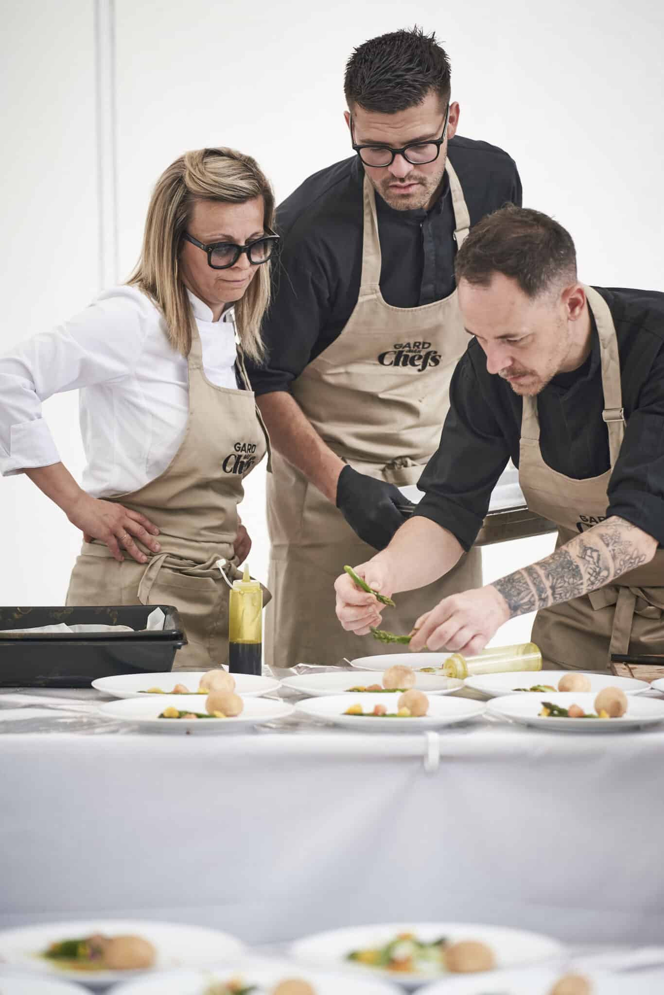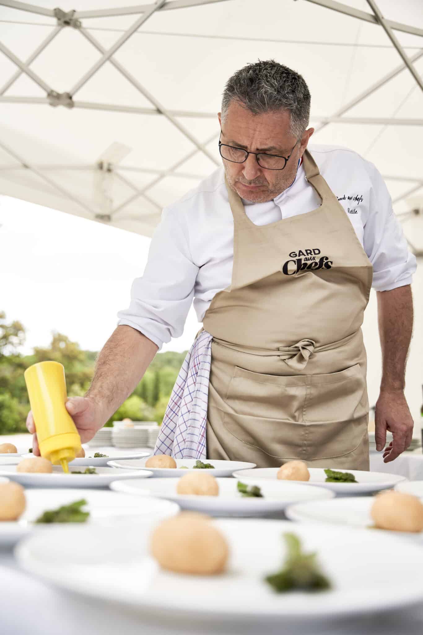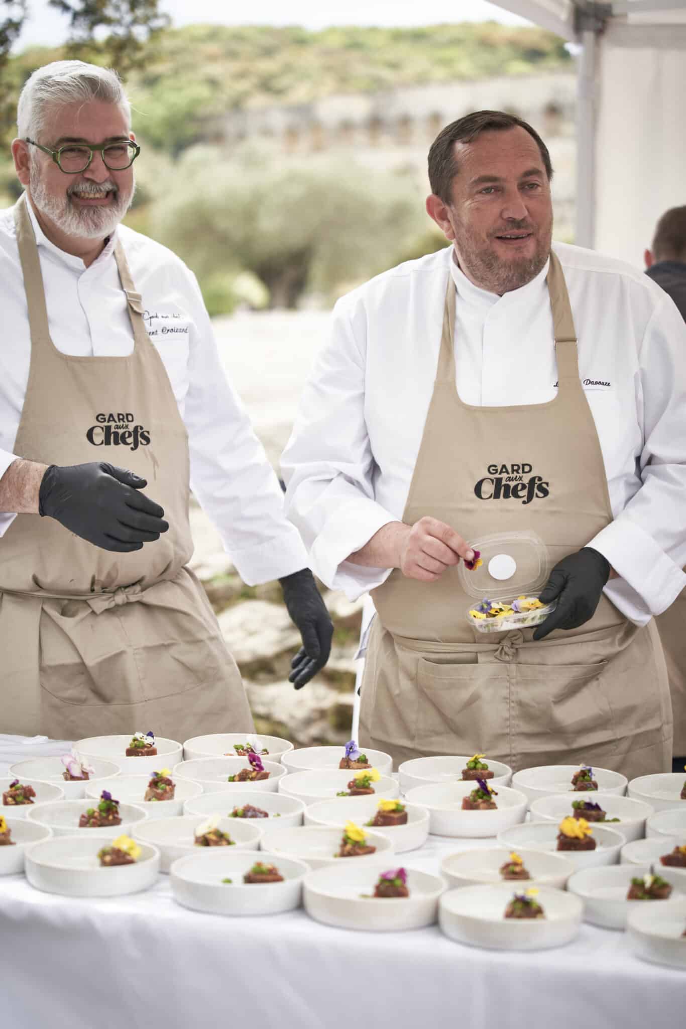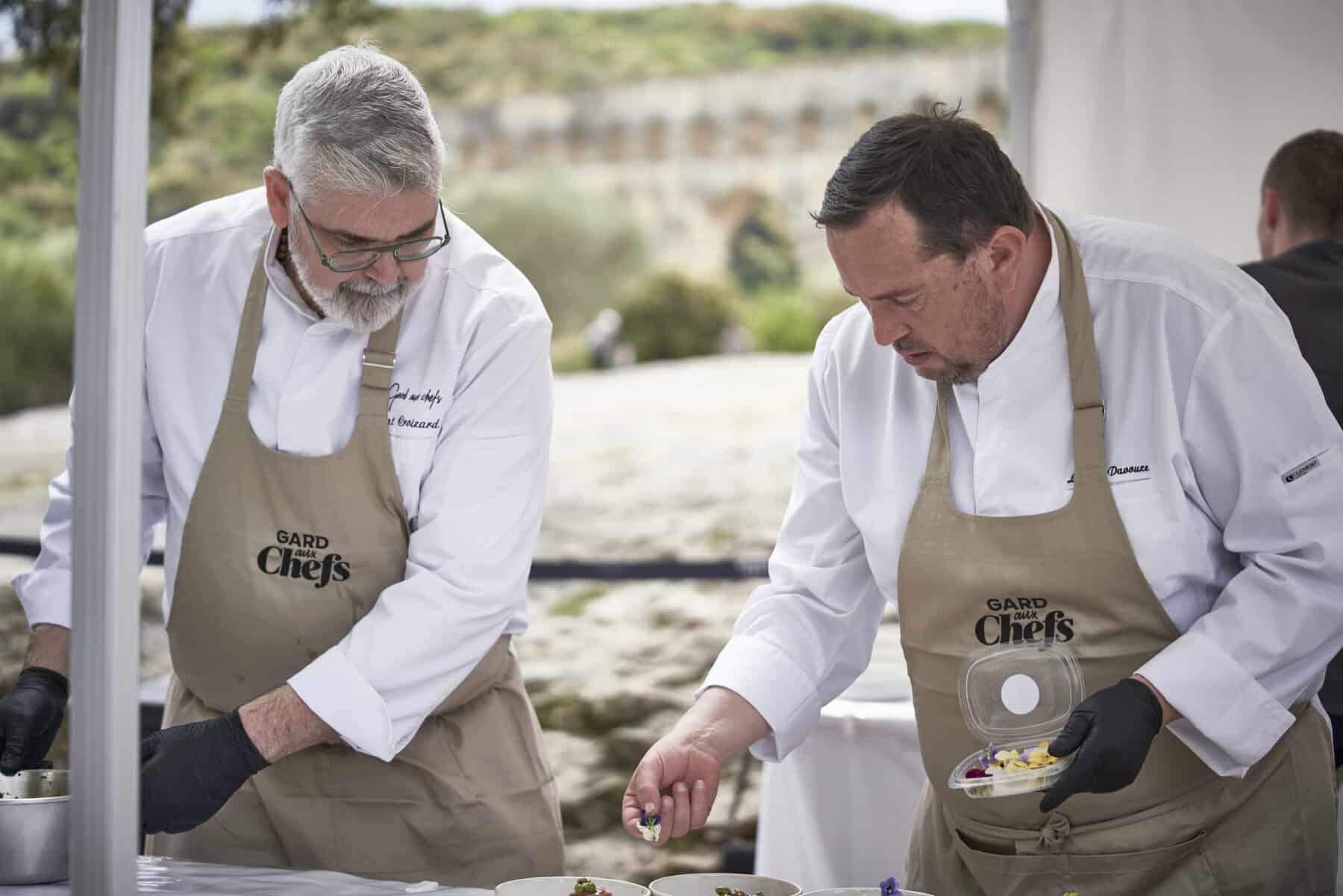 Soutenu et coordonné par Gard aux Chefs, l’événement a réuni plusieurs membres du collectif autour d’une idée simple : cuisiner sur place des plats gastronomique, en direct, avec les produits du territoire. Chaque chef a proposé sa propre interprétation du Gard, avec des recettes lisibles, et ancrées dans la saison. Une cuisine précise, sincère, travaillée pour valoriser les ingrédients et expliquer les gestes.